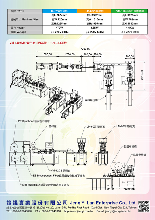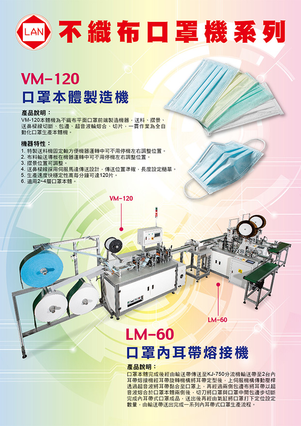 VM-120 口罩本體製造機、LM-60 口罩內耳帶熔接機